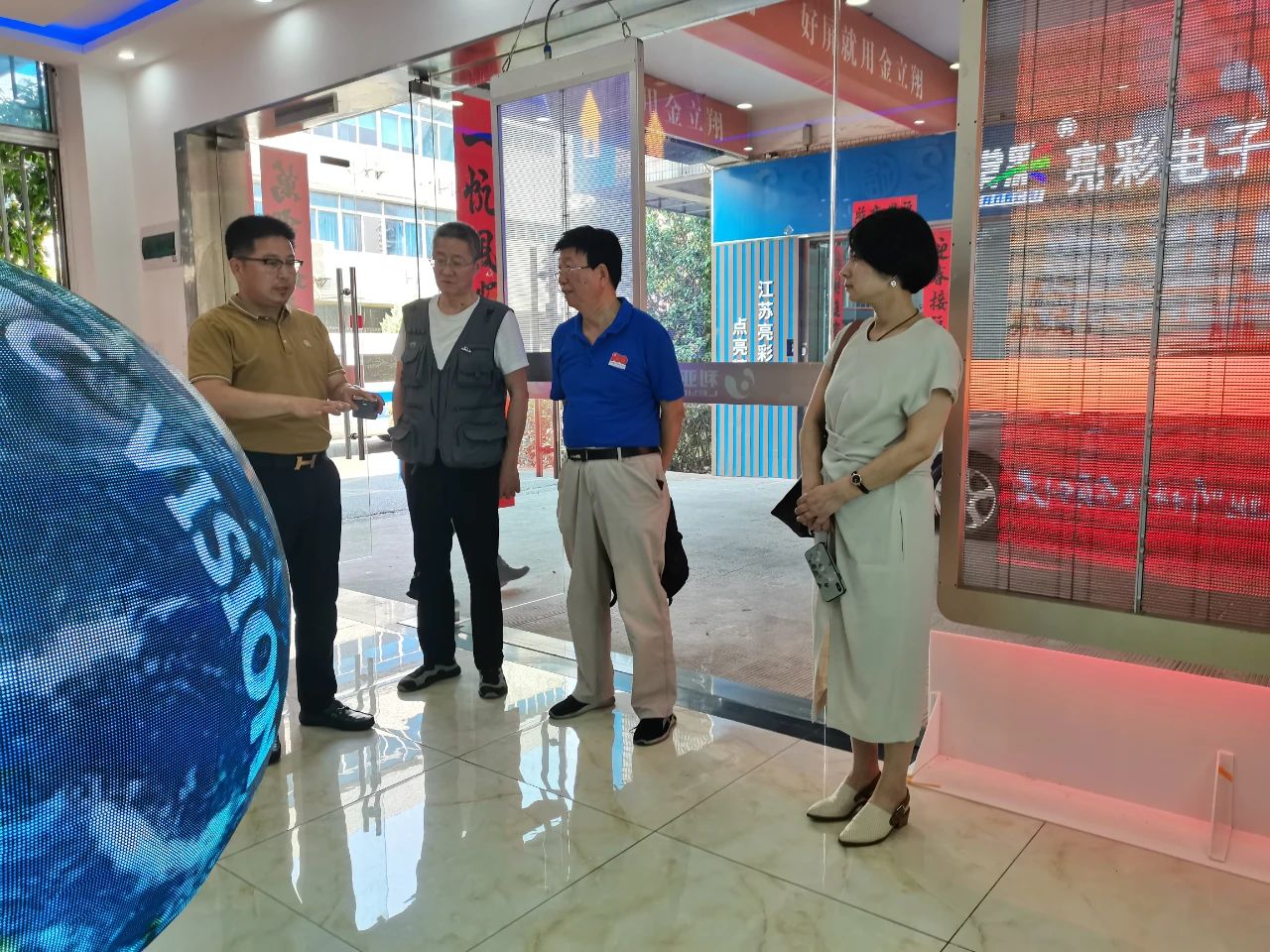 6月14日下午,常州市清華企業(yè)家商會(huì)榮譽(yù)會(huì)長(zhǎng)莊舒行、商會(huì)秘書長(zhǎng)徐文棟、副秘書長(zhǎng)魏琴等一行來到江蘇亮彩電子有限公司,進(jìn)行考察走訪。公司總經(jīng)理章九余熱情接待了大家。